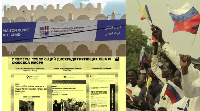 L’ouverture de la Maison russe de Ndjamena est identifiée comme un bon vecteur d’influence. À cette même période, en août 2024, sa directrice, une Tchadienne ayant étudié en Russie, signe même un partenariat avec Manara TV, une chaîne de télévision récemment lancée par le directeur de la communication de la présidence, largement dédiée « à chanter les louanges du pouvoir », selon le directeur d’un média privé tchadien. « Le partenariat avec le Russkiy Dom (Maison russe) apportera une richesse culturelle et éducative, permettant de diversifier les contenus proposés aux téléspectateurs », est-il écrit dans le communiqué. Les Maisons russes servent à diffuser l’influence russe par la politique culturelle et éducative, en y ajoutant le narratif politique du Kremlin.